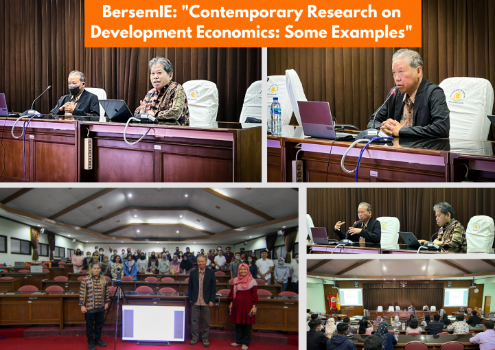 The Master of Science and Doctoral Program (MD) FEB UGM collaborates with the Department of Economics FEB UGM to organize a joint learning event, namely BersemIE (Joint Learning at the Department of Economics), with the topic “Contemporary Research on Development Economics: Some Examples.” This event was held offline and took place in the BRI Auditorium Room 3rd Floor MD FEB UGM Program. This session presented Prof. Budy P Resosudarmo, Department of Economics, Crawford School of Public Policy, Australian National University, as a speaker and Prof. Catur Sugiyanto, M.A., Ph.D., Department of Economics FEB UGM, as moderator. This joint study session aims to develop knowledge and research capabilities, particularly in the field of development economics.