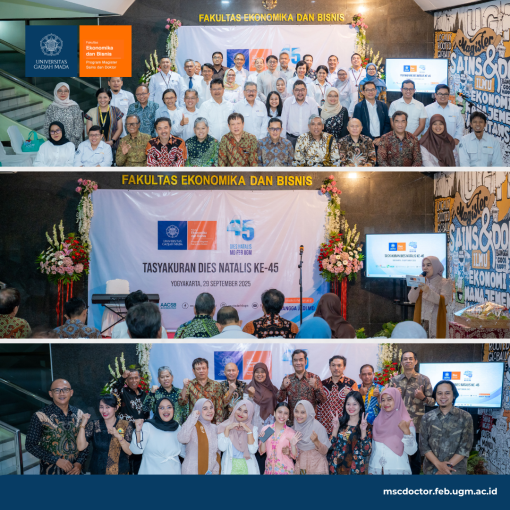On Monday, September 29, 2025, the Master of Science and Doctoral (MD) Program at the Faculty of Economics and Business, Gadjah Mada University (FEB UGM) held a thanksgiving ceremony to commemorate its 45th anniversary in the lobby of the MD Building.