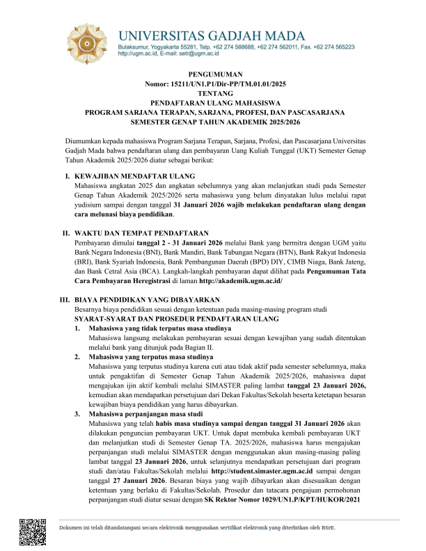 - Mahasiswa program sarjana FEB UGM tercatat aktif pada semester 6 atau 7.