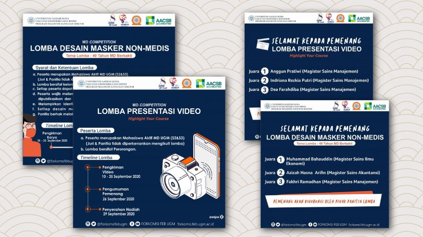 Yogyakarta- Sabtu, 26 September 2020. Ikatan Mahasiswa dan Alumni Program Doktor FEB UGM (IMADEBGAMA) mengadakan Diskusi & Sharing berjudul “Optimis Studi Lanjut S2 dan S3” menggunakan zoom cloud meeting. Kegiatan MD Open House ini merupakan rangkaian acara Lustrum 8 Program Magister Sains dan Doktor (MD) FEB UGM yang diadakan pada hari yang sama dengan Webinar panel presentasi 14 topik yaitu “Bias di Penelitian dan Cara Mitigasinya”. Webinar ini bertujuan untuk: (1) memberikan informasi tentang syarat dan standar menjadi mahasiswa MD FEB UGM; (2) sarana diskusi; dan (3) sharing mengenai informasi persiapan menjadi mahasiswa MD FEB UGM dan memberikan informasi kehidupan mahasiswa MD FEB UGM.