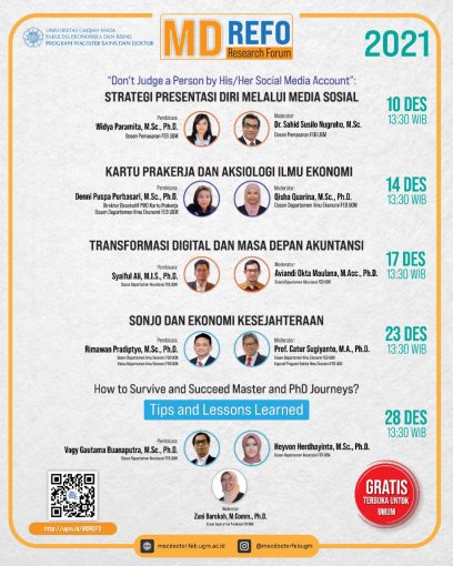 Pada 5 Februari 2026, Program Magister Sains dan Doktor (MD) FEB UGM menyelenggarakan kegiatan Researcher’s Enrichment Program (REACH) sekaligus pengenalan akademik Tahun 2025 yang diikuti oleh mahasiswa baru Program MD.